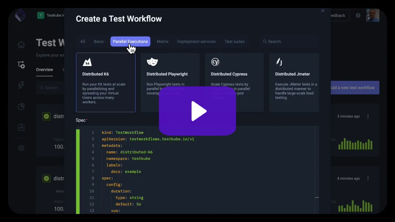 Testkube leverages your existing infrastructure to orchestrate any automated test into scalable workflows enabling Continuous Testing across any environment and delivery pipeline.