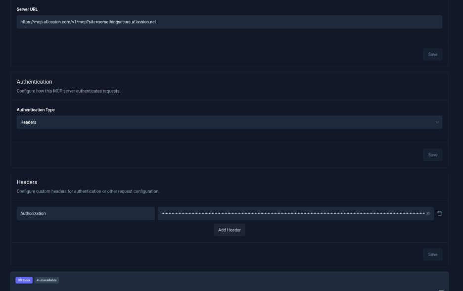 Next, configure the MCP servers that provide the tools the agent will use during investigations. For this example we are using two MCP servers: