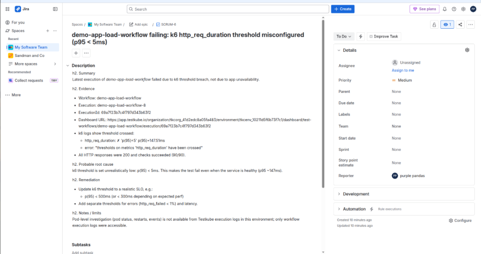 With this, the entire process from detecting a failure to understanding why it happened and creating a ticket for fixing it is handled automatically, saving time and reducing manual effort creating a smooth feedback loop where test failures are not just detected but also explained and converted into actionable tasks for the team to resolve quickly.
