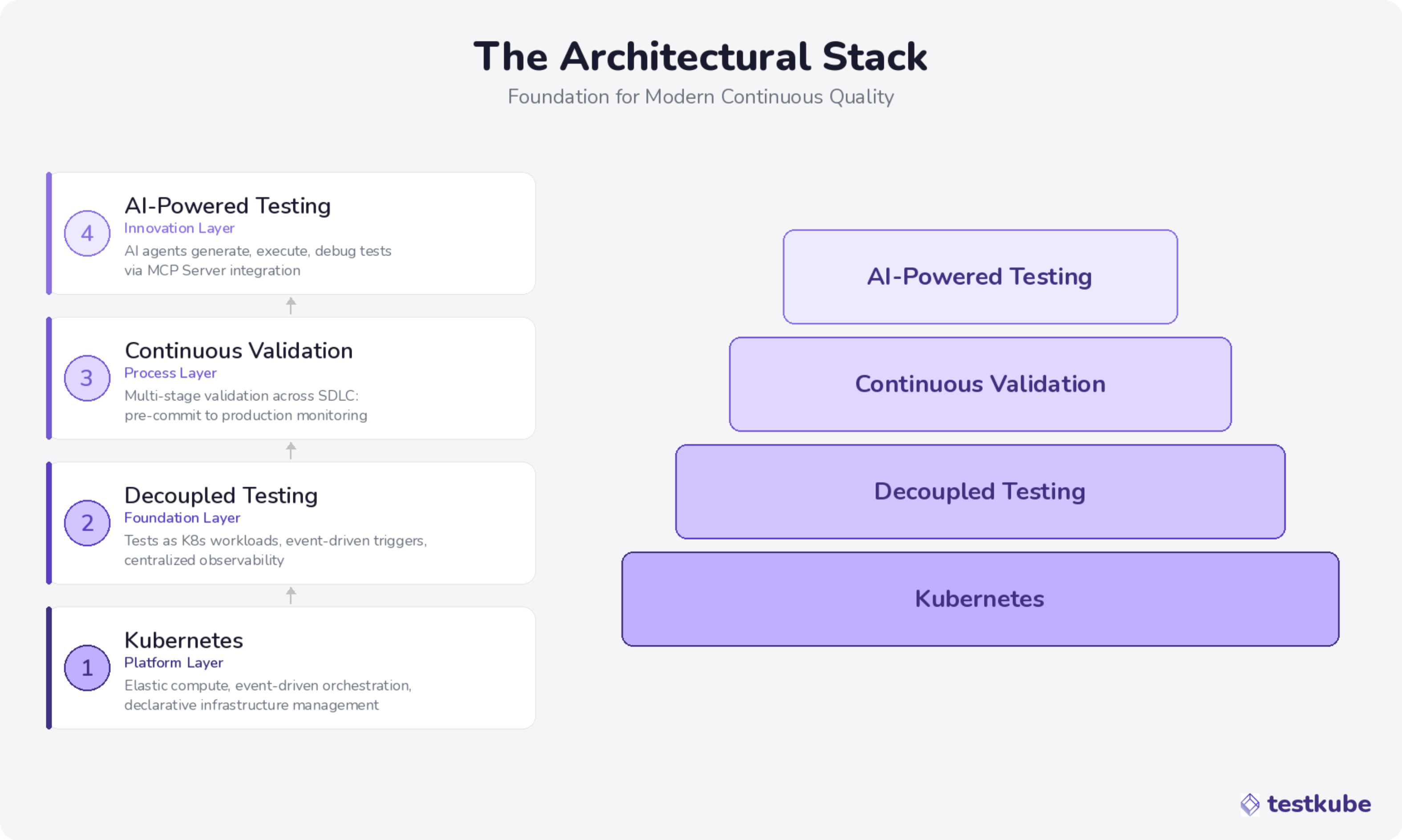 This isn't an incremental improvement - it's a different architectural model. One locks testing to pipeline constraints. The other gives testing the same flexibility, scalability, and event-driven execution that makes Kubernetes effective for applications.