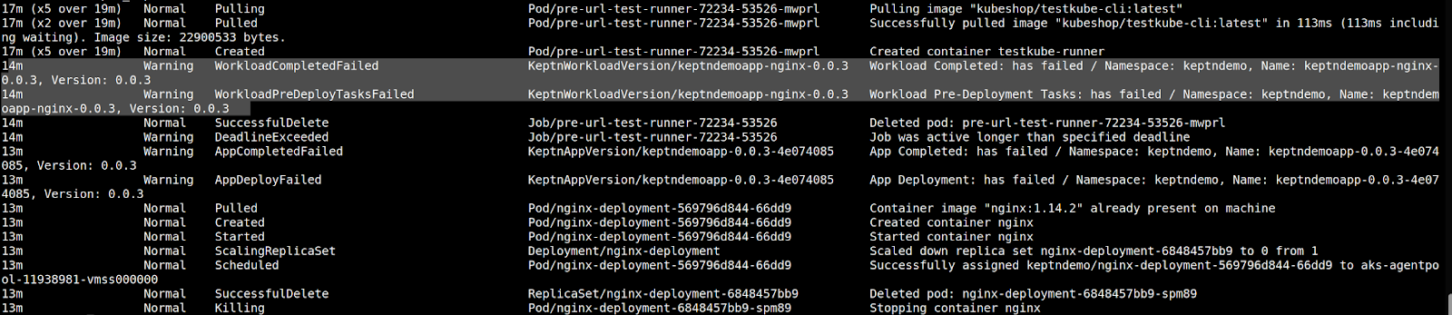 Let us now go ahead and inspect the events in the cluster to check our pre-deployment task.