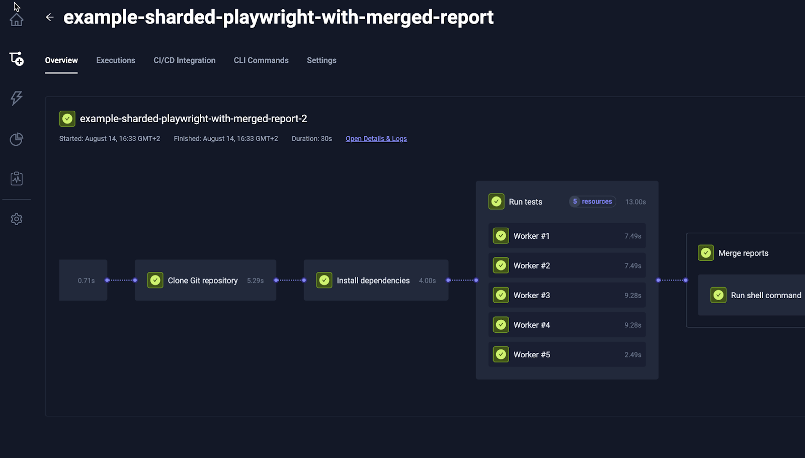 - Playwright tests can be parallelized and sharded across multiple nodes using Playwrights built-in sharding functionality