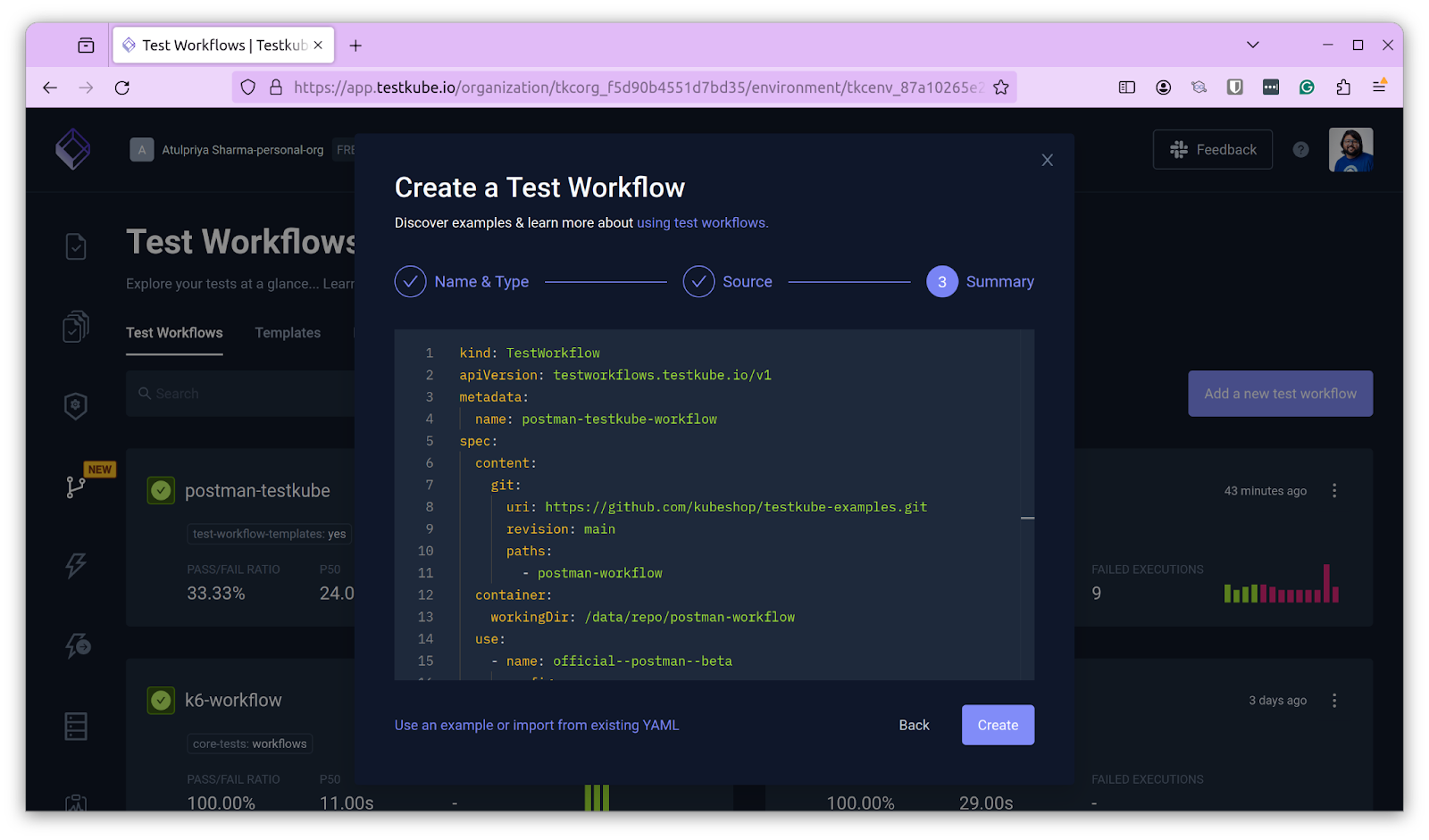 This was a simple demo of creating a Postman Test Workflow using Testkube for API testing in Kubernetes. To take advantage of test workflows more, you can create custom workflows and import them to Testkube.